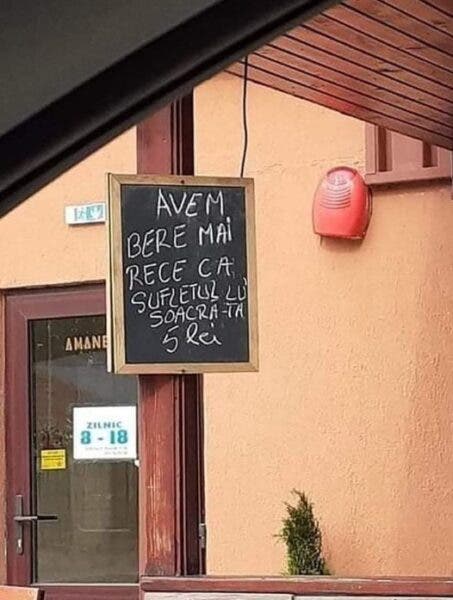 5 lei”, este anunțul pe care patronul unei terase l-a agățat la intrarea terasei.