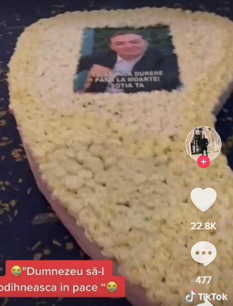 Ana, soția regretatului artist, a ținut să scrie un mesaj extrem de emoționant pe coroana din partea sa. ”Cu adâncă durere! Până la moarte, soția ta”, este ceea ce scrie pe banderola coroanei comandată de mama celor trei copii ai artistului. Rămasă văduvă la o vârstă mult prea tânără, Ana își plânge neîncetat soțul.