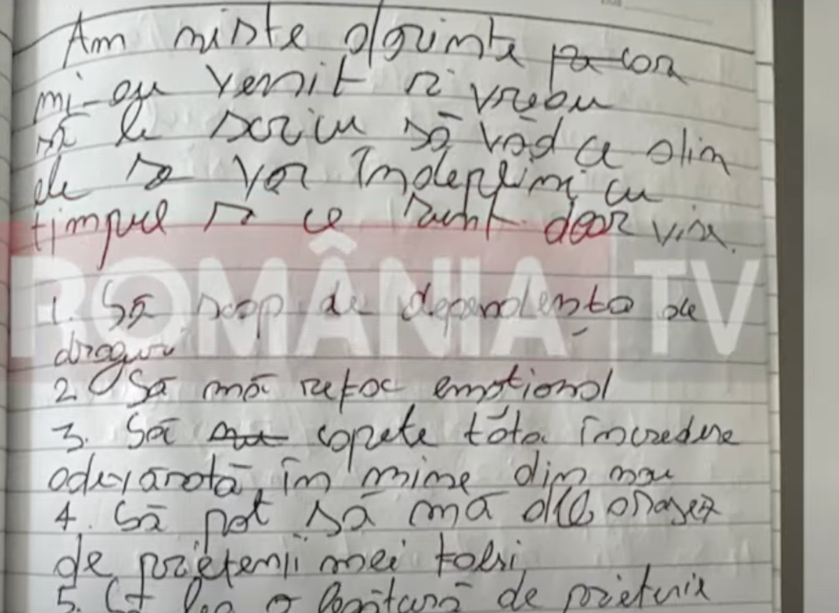 Într-o filă din presupusul său jurnal, Vlad Pascu a scris o listă de dorințe: