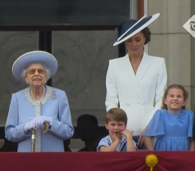 Suverana Marii Britanii a apărut la balconul Palatului Buckingham pentru a urmări survolând avioanele din armata regală britanică. Alături de ea s-au aflat și ceilalți membri ai familiei regale, respectiv Prințul Charles și Ducesa de Cornwall, Ducii de Wessex, Ducele de Kent, Prințesa Anne, dar și nepoții și strănepoții suveranei, respectiv familia Cambridge și surorile Beatrice și Eugenie, alături de micuții lor.