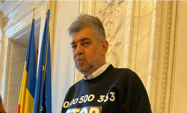 Marți, președintele PSD și premierul Marcel Ciolacu a fost văzut în holurile Parlamentului purtând un tricou pe care erau afișate un număr de telefon și un mesaj.