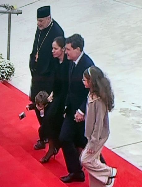 Spre deosebire de majoritatea invitaților oficiali, familia prezidențială s-a oprit pentru a saluta credincioșii aflați în curtea Catedralei, gest primit cu aplauze și bucurie de cei prezenți. Pentru acest eveniment istoric, Mirabela Grădinaru a optat pentru o ținută complet neagră, formată din fustă și sacou. În plus, partenera lui Nicușor Dan a accesorizat ținuta cu un șal negru, simplu, pe care l-a pus pe cap.