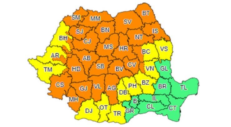 Vești proaste din partea specialiștilor de la Administrația Națională de Meteorologie. Aceștia au emis două avertizări meteorologice de tip cod galben și cod portocaliu de grindină și ploi abundente. Marea majoritate a țării va fi afectată.