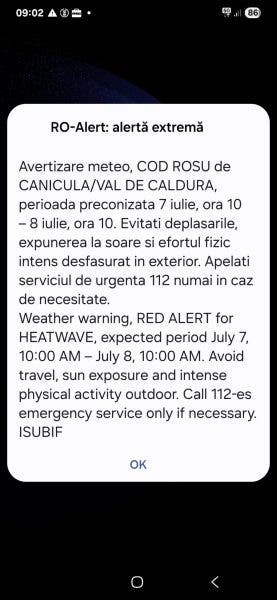Autoritățile au transmiss populației și un mesaj RO Alert.