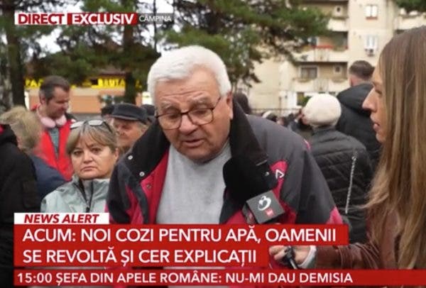 „Stau la rând o jumătate de zi ca să ia două sticle de apă. Nu sunt numai eu supărat. Toată lumea e supărată. Așteptăm să vină de la Primărie să dea apă, care trebuia dată gratis, nu pe semnături, că nu stau cei de aici de la rând să facă speculă. Alții fac speculă.