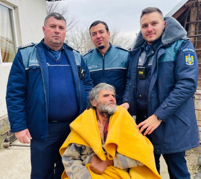 Trei polițiști din Dolj au salvat un bătrân de la moarte. L-au găsit în frig inconștient, desculț și aproape dezbrăcat, cu hainele ude, într-o zonă greu accesibilă de pe un câmp. Datorită lor, omul este acum în viață.