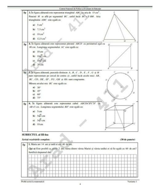 Care sunt subiectele și baremele la proba de Matematică