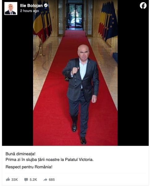 Ilie Bolojan a pășit marți dimineață în Palatul Victoria pentru prima zi în funcția de prim-ministru, marcând oficial începutul mandatului său la conducerea noului Executiv. Cu acest prilej, premierul a transmis un mesaj simbolic pe rețelele sociale: „Prima zi în slujba țării noastre la Palatul Victoria. Respect pentru România!”.