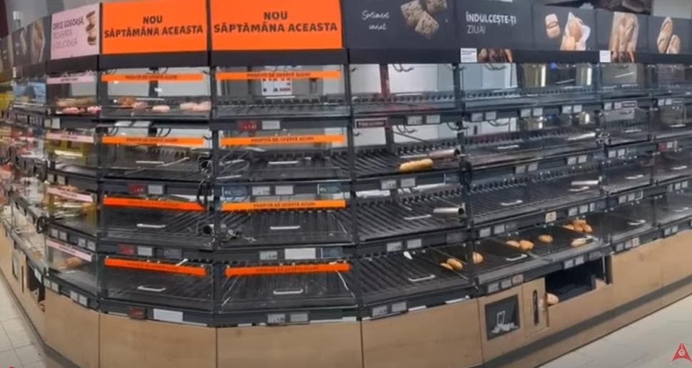 Imagini apărute online arată rânduri întregi de rafturi goale. În unele magazine, singurele produse rămase au fost câteva legături de ceapă verde și câteva sticle de apă minerală. „N-am mai prins nici pâine, nici lapte. Lumea cumpără de parcă vine sfârșitul lumii”, a spus o femeie surprinsă într-un supermarket din zona Tomis Nord.