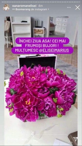 Pentru a-i avea alături pe cei doi părinți ai săi, Oana și Marius au decis să meargă împreună cu fiica lor într-o vacanță la munte, exact ca o familie. Recent, Marius i-a făcut un cadou special Oanei Roman, la ceas de seară. Este vorba despre un buchet imens de bujori roz, aranjat într-o cutie specială, semn că acesta a vrut să o impresioneze pe fosta soție. Vedeta nu a rămas pasivă la gestul lui Marius și i-a mulțumit public, la InstaStory, loc în care a postat și imagine. „Închei ziua așa! Cei mai frumoși bujori. Mulțumesc, Elisei Marius”.