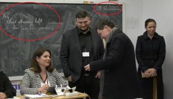 În timpul vizitei, atenția vizitatorilor și a membrilor comisiei electorale a fost atrasă de tabla aflată în spatele biroului de vot, rămășiță a unei lecții recente de engleză. Pe partea dreaptă a tablei se putea observa data „05.12.2025”, probabil indicând ziua în care a fost desfășurată respectiva lecție.
