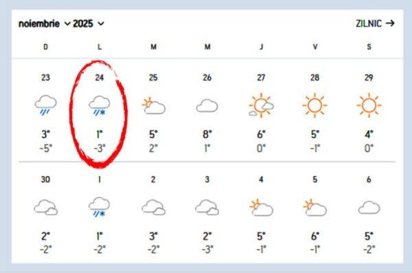 Până la instalarea ninsorilor consistente, vremea va rămâne predominant rece. Între 27 și 29 noiembrie, sunt prognozate intervale cu soare în majoritatea zonelor montane, însă temperaturile nu vor crește semnificativ: maximele se vor situa între 4 și 6°C, iar minimele între -1 și 0°C.