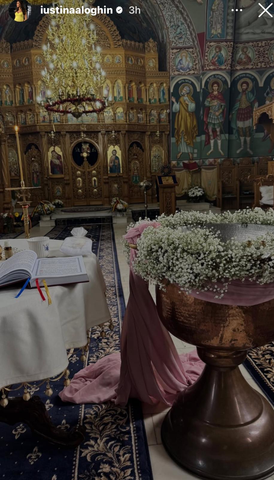 Pe 27 decembrie, Iustina și Cornel au avut parte de un botez deosebit pentru fiica lor. Evenimentul a fost organizat într-un cadru liniștit, departe de agitația orașului, într-o biserică de la poalele munților. Lăcașul sfânt, cu pereți încărcați de istorie, a fost decorat cu flori albe și ornamente delicate de culoare roz, pentru a evidenția puritatea și inocența micuței Ivana Nectaria.