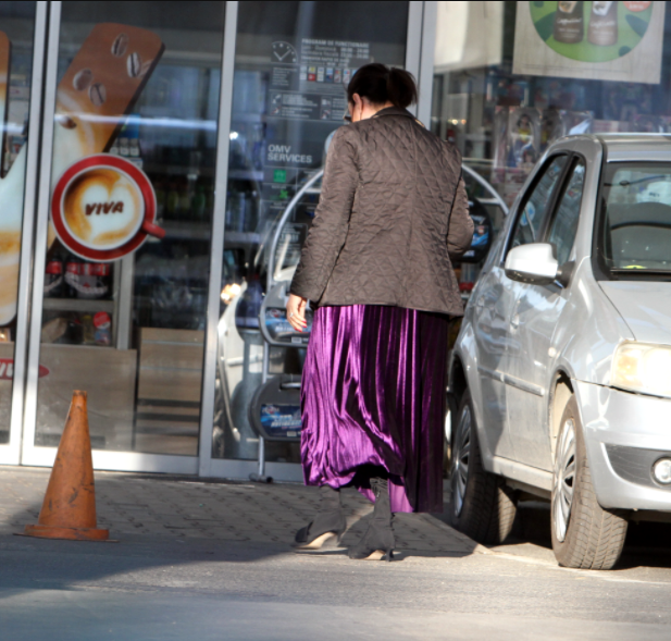 Oana purta o ținută pentru această perioadă și s-a putut observa că a luat câteva kilograme în plus. Iubita lui Marius Elisei a optat pentru o rochie lungă și un sacou. După ce și-a cumpărat un sendvis și o cafea din benzinărie, vedeta s-a urcat în mașină și a plecat mâncând.
