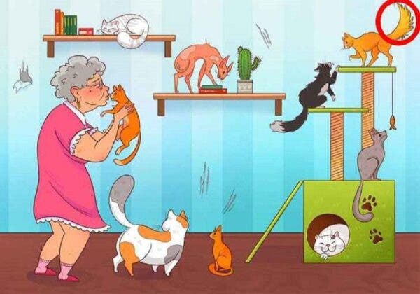Să dezvăluim, în cele din urmă, care este greșeala din imagine. Poate ai observat deja, dar una dintre pisicile doamnei, cea din partea dreaptă de sus, are o coadă neobișnuită. Coada este mai degrabă de câine decât de pisică. Poate că nu este o greșeală gravă, dar este un detaliu subtil pe care doar cei cu o perspicacitate deosebită l-ar observa într-un timp atât de scurt.