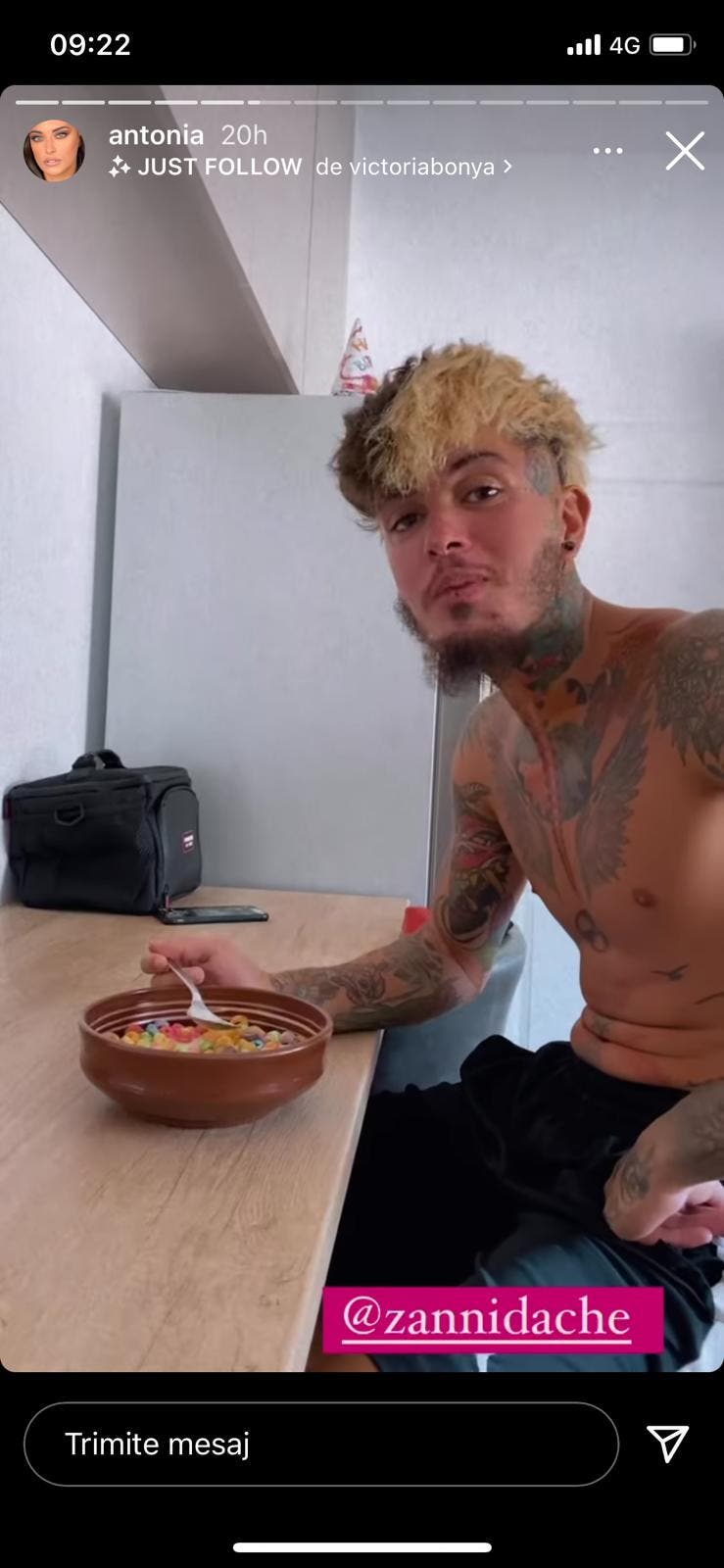 Antonia a postat recent pe contul ei de Instagram câteva clipuri în care apare Zanni, mâncând cereale cu lapte. Artista a făcute aceste videoclipuri pentru a le răspunde fanilor la întrebarea ”ce face Zanni”. Potrivit imaginilor, se pare că tânărul artist ar locui alături de Alex Velea și Antonia, în casa acestora.
