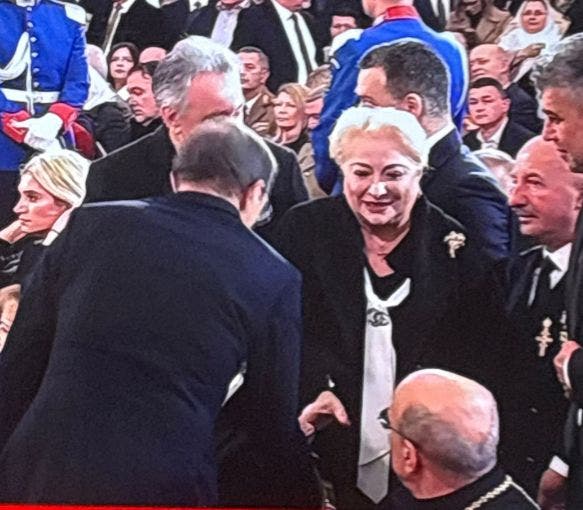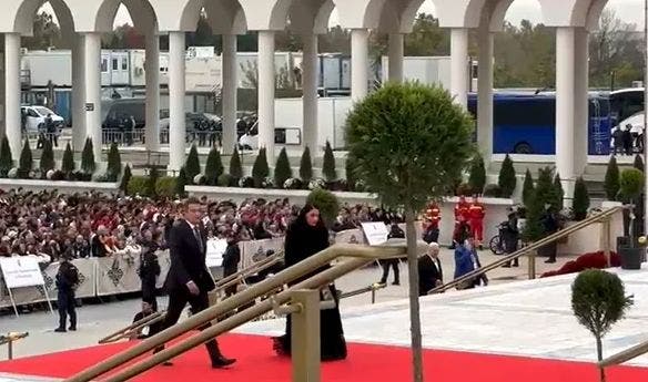 Părul blond, coafat impecabil, și machiajul natural i-au accentuat prezența distinsă, conferindu-i un aer demn și armonios cu solemnitatea momentului. Fosta șefă a Executivului a urcat treptele Catedralei însoțită de un preot și de soțul său, zâmbind discret celor prezenți și menținând o atitudine calmă și respectuoasă pe tot parcursul ceremoniei.