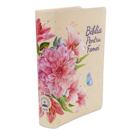 - Biblia de studiu pentru femei, marime medie, culoare crem, model floral