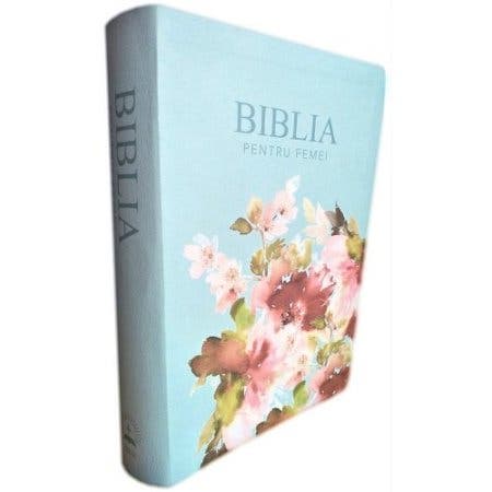 - Biblia de studiu pentru femei, marime medie, culoare turcoaz, model floral, margini argintii, cuv. lui Isus cu roșu